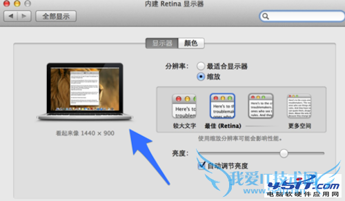 其实苹果还提供了多种屏幕显示设置,如果你想把屏幕上的字体显示变大小,可以换一个显示分辨率。下面简单介绍下设置的方法。