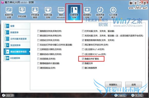 想要方便查看文件扩展名,可以用美化大师添加“显示/隐藏文件扩展名”右键菜单,方便实时切换显隐扩展名。