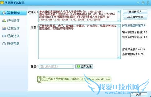 在阿里通主界面右侧可以找到短信功能,可以一目了然地接收和发送短信,在电脑上发送短信更加方便便捷,支持群发短信,VIP用户最多一次群发达到5000条。