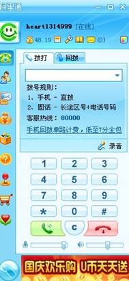 到目前为止,阿里通网络电话已经在市面上推出多个版本,包括有web网页版、PC软件版、手机软件回拨版、flash版等等,0元月租0元漫游费,资费平民化消费。比如使用阿里通PC版拨打国内长途电话最低仅需0.05元/分钟,即使打上2个小时,也仅需6元,比传统固话/手机节省85%以上的话费。笔者亲自体验一番,发现阿里通使用起来非常简单,极易操作。