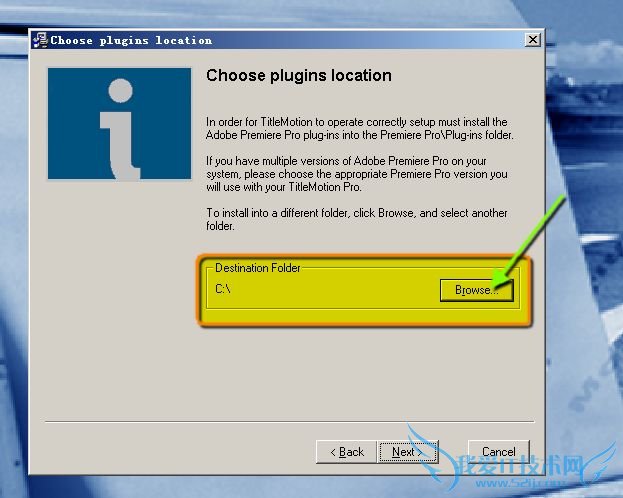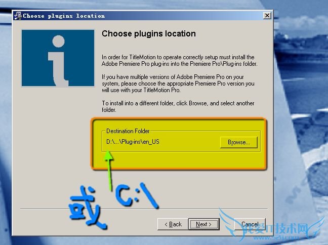 1、安装TitleMotion Pro for Premiere Pro时,在第一次出现安装路径“C:”的对话框中,