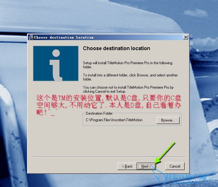 点击“下一步”后,出现的汉化路径请一定选择在x:Program FilesInscriberTitleMotion,