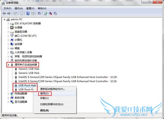 二、接着点击“通用串行总线控制”,找到USB Root Hub依次右击“USB Root Hub”,选择“禁用”,接着在右击选择“启用”。如下图所示: