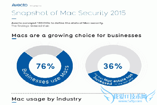 也许让很多 Windows 平台用户感到吃惊,近期由 Avecto 对 100 名首席信息官和 1000 名职工的调查发现目前有 76 %的企业市场直接或者间接的使用 Mac 设备,相比较去年同期的 71 %增长了 5 %。尽管市场占有率有所提升,但是在报告中显示随着使用量的增加,商业人士对于 Mac 安全功能的信心相比较去年有所下降。