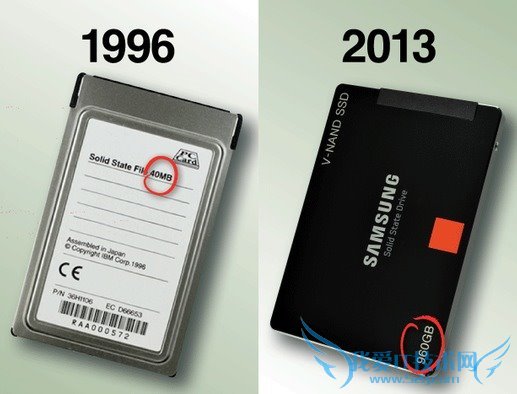 6、闪存和闪存比较也进步大大的。1996年一个闪存卡只有40MB,而2013年同样大小的闪存盘是960G: