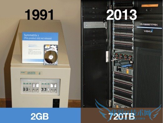 磁盘发明到现在已经快60年了,60一甲子,原来的数据存储和现在的数据存储有哪些不同?国外著名的媒体computerworld也选了7张产品对比图片来说明数据存储技术和时代的变迁。我们一起来看看吧。