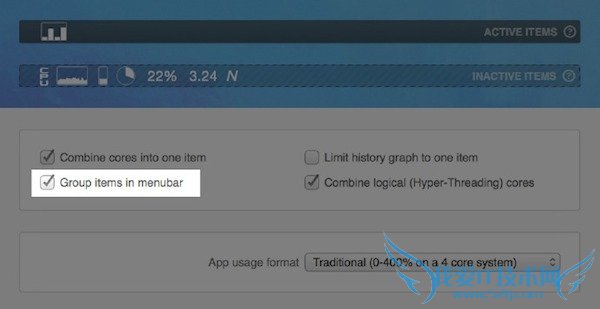相信在开启某些功能时,部分用户会选择两种,甚至更多组合,用来同时显示,虽说如此,但也不等于下拉菜单就能做到(旧版本),开发商当然也考虑到了这点,因此加入了 Group Items In Menubar 功能。