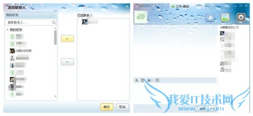 在聊天窗口中“邀请好友加入多人会话”或者主界面群聊选项中都可以创建米聊群,添加相应的好友并创建群名后就可以进行群聊了,具体聊天功能和前面的好友聊天一样,在右侧可以看到加入该群的所有人员信息,右上角多了群消息设置功能。