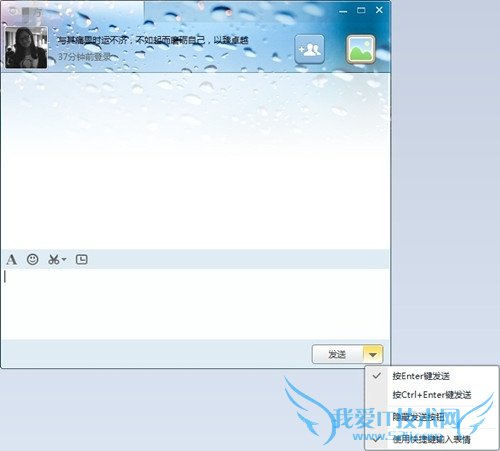 聊天界面非常简洁,功能也相对较少,只支持文字聊天、表情以及截屏功能,对于熟悉了快捷键聊天的用户来说,米聊PC版还可以选择隐藏右下角的“发送”按钮,让界面看起来更加简洁。点击旁边的聊天记录按钮可以查看聊天记录,在聊天窗口的右上角有两个非常醒目的按钮,一个是“发送图片”按钮,你可以把本地图片传送给好友。左边的按钮则是“邀请好友加入多人会话”,方便用户快速的创建米聊群进行群聊。