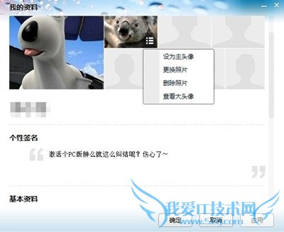 点击头像可以进入用户资料设定界面,PC版米聊支持上传多个用户头像,你可以选择其中的某一个作为主头像.