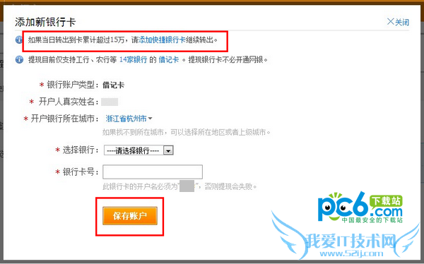 2)新增银行卡:若账户当日转出至卡累计超过15万,需点击【添加快捷银行卡】后在继续操作转出。