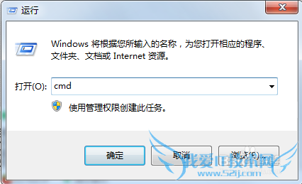 2、在弹出的运行对话框中输入【cmd】,点击确定,进入dos界面