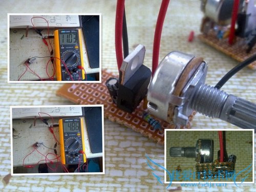 步骤一:将原件插入洞洞板,然后用用烙铁在背面用锡把原件的管脚根据电路图来焊接。模块制作完成,我用万用表测得,它可以将12V电压输出在4.86V与12V之间调节