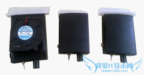 步骤四:上盖也是相同的方法,开出与风扇出风口大小相同的口子,然后用热熔胶把风扇粘接在上盖上。制作好上下盖风扇后,用线材将它们并联,然后接LM317T模块的电压输出。在上盖下盖的接触处涂上些许万能胶,待其稍稍干燥,将上盖下盖合并固定