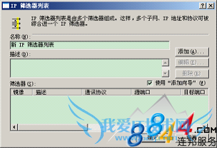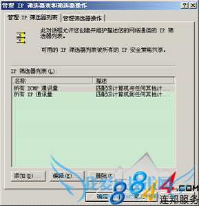 3.选中为“管理IP筛选器列表”当前标签页,点击“添加”按钮,进入“IP筛选器列表”对话框。