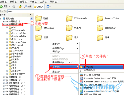 第二步、单击将要备份到的某一磁盘——在右边对话框空白处单击”右键“——选定”新建“——文件夹。如下图