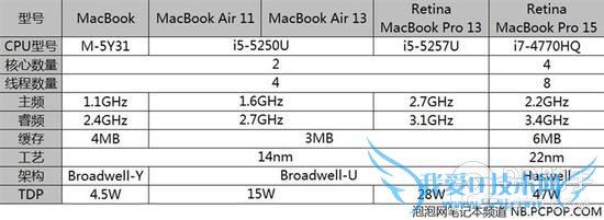 MacBook系列笔记本的性能和前文提到的轻薄度是成正比的,即笔记本越轻薄性能也就越弱,这也是我们在上文中不推荐大家买最轻的MacBook原因之一。