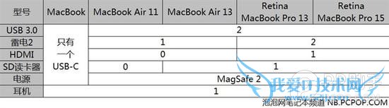 其 余四款MacBook都拥有两个USB 3.0接口,能够满足大部分用户的使用需求(满足不了也就只有两个,USB接口不够只能用集线器扩展);MacBook Air虽然没有配备HDMI接口,但拥有一个雷电2接口,足矣扩展外部显示设备;11英寸MacBook Air没有SD读卡器,需要经常使用SD卡的用户不建议选择。