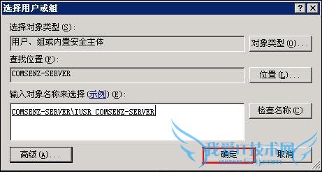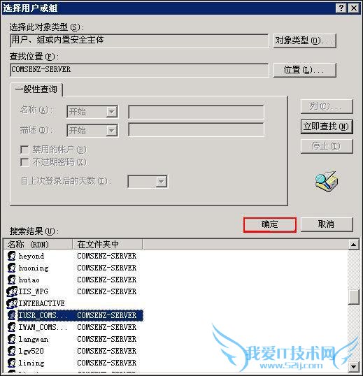 从“搜索结果”中找到以“IUSR_”开头的用户点击“确定”,得到如下图所示的界面: