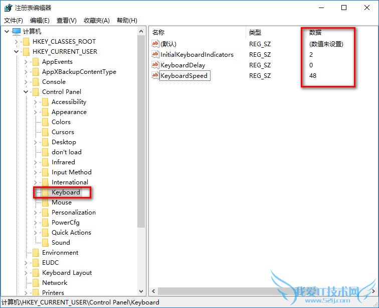KeyboardSpeed(是键盘速度),设置为“48”(根据自己的需要,也可以设置为其它值)