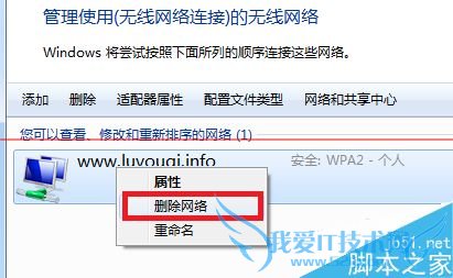 3、右键你的无线网络名字,点击“删除网络”