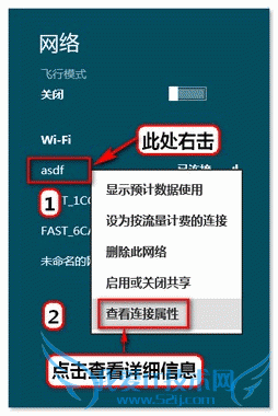 还有一种打开无线属性的方法:点击右下角的无线网络图标。在无线网络列表里面已连接上的无线信号右击选择查看无线属性。如下图所示: