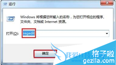 2、在运行框中输入"regedit"→点击【确定】: