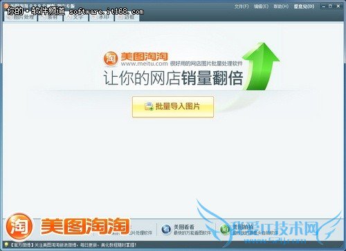 同样都是借助第三方的帮助,专为网店卖家设计的图片美化工具--美图淘淘却是完全免费使用(界面如图1所示);而且美图淘淘也只是给了我们一个 动手的平台,还是需要自己用心的去美化宝贝图片。使用工具软件完全是零投入,一次安装永久获益;更重要的是这款软件操作简单,卖家们通过美图淘淘除了有助 于网店经营外,也从中收获到了宝贝图片个性DIY的快乐。这种自己用心去做的快乐,是靠虚假刷钻永远体会不到的。