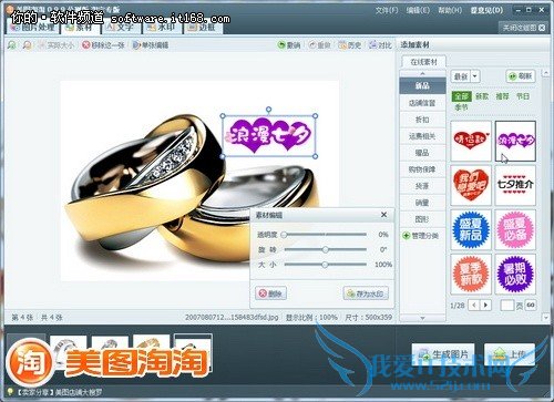 说美图淘淘可持续性强,也绝不是无凭无据的臆想。软件自带海量美化素材且实时更新,重大节庆来临前软件都会及时更新相应主题的美化素材。比如日益临近的七夕情人节,为了帮助网店卖家们更好的开展节庆促销,相应的节日美化素材也早早的就更新了进来,如图2所示。