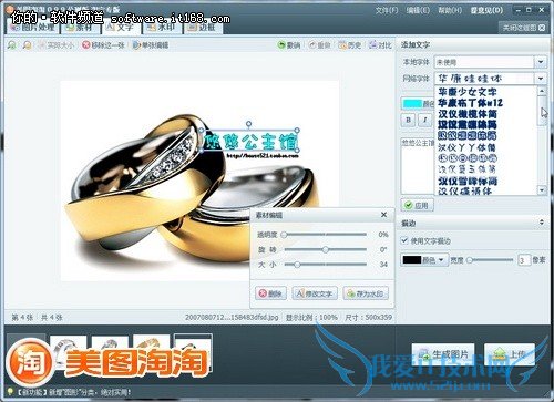 虚假刷钻总有东窗事发的一天,到那时悔之晚矣,买家的信任度也丢失殆尽。用美图淘淘实打实的经营,以宝贝图片质量取胜,以促销活动图片抢眼为卖 点,并能根据不同节庆灵活调整,自然可以留住回头客。美图淘淘的网络文字及水印功能还能帮助卖家在宝贝图片上创建非常专业的水印效果,提升网店形象自然是 非同凡响 (效果示意如图3所示)。