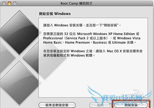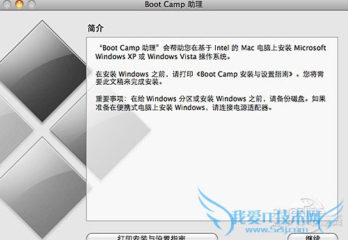 一切准备就绪,下面开始Boot Camp安装Windows 7之旅。