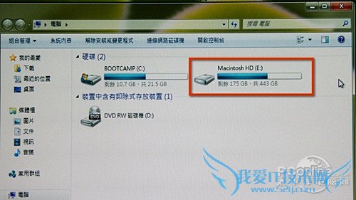 安装完驱动程序重新开机后,你就会看到在我的电脑里,出现Mac的分区,如下图红框中的“Macintosh HD”,这样你就可以在windows下共享Mac端的文件了,不过很可惜的是,也是只能读取,不能写入,也许是为了安全性的考量。