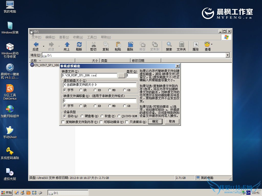 【方法3】与方法2类似,无需解压iso直接在PE里利用虚拟光驱加载Win7的ISO安装文件,然后利用NT6安装工具等软件进行安装。(32位64位系统通用)