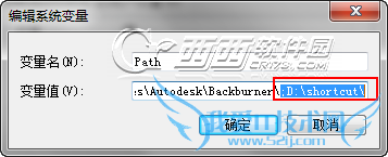 在变量值最后面加一个半角分号(就是美式键盘下的分号),然后分号后面加入开始新建的那个文件夹的路径,小编的路径为D:shortcut,编辑完毕后点击确定。