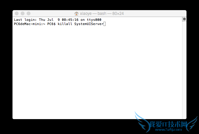 第三步、操作完成后,再次输入killall SystemUIServer后回车
