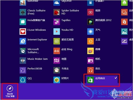 然后选取想找回的图标,点击左下角的“固定到‘开始’屏幕”即可。同样非常简单,但是这种方法无法恢复被删除的应用,请大家注意。