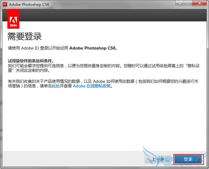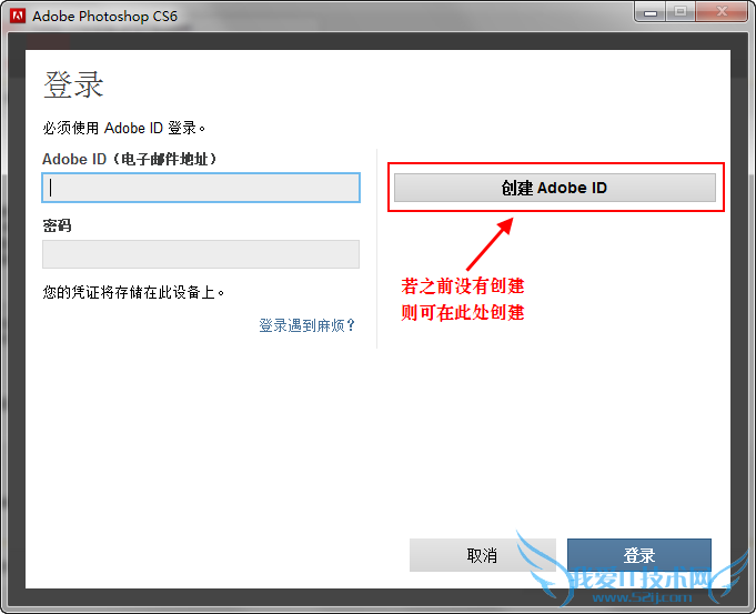 5、此步需要登录刚才我们创建的Adobe ID,如果之前没有创建ID的则可以在点击登录后的页面中创建。