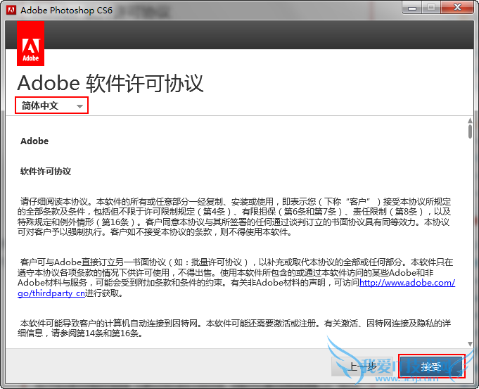 4、接受许可协议