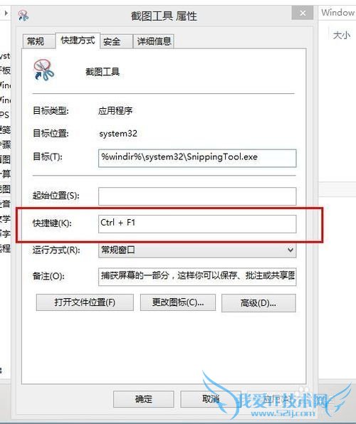 4、在打开的属性界面和其他的应用程序是不一样的,这里的属性界面多了一个快捷键的栏目,直接在属性的快捷键中国输入即可。