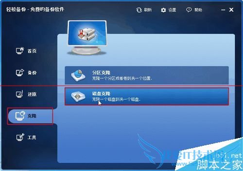 第一步:首先在“克隆”栏下选择“磁盘克隆”。