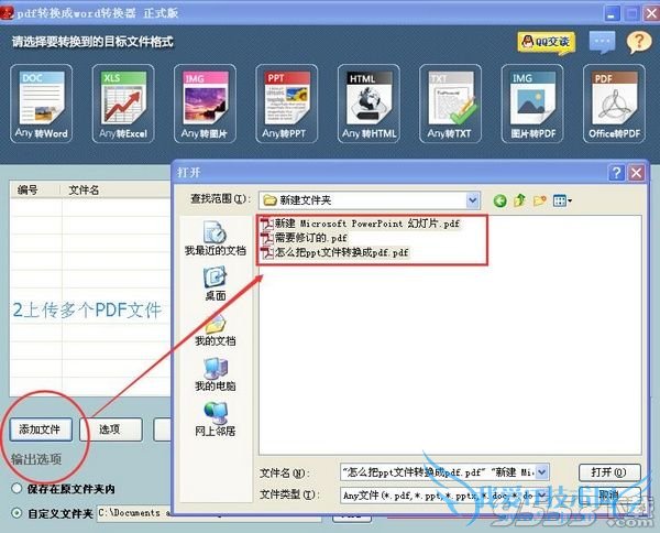 step2: 在软件左下方点击“添加文件”, 把需要转换的文件添加进来,一次可添加多个文件。同时选择转换后文件需要保存的位置。