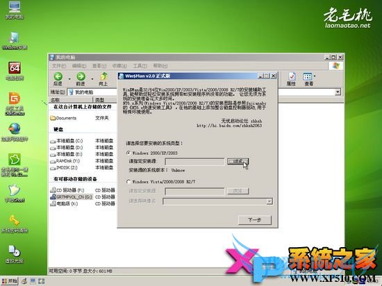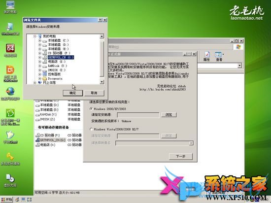 2、打开桌面上的windows安装工具,选择刚才加载的虚拟磁盘(如果前面是直接解压的ISO文件,点浏览的时候选择解压后的目录)