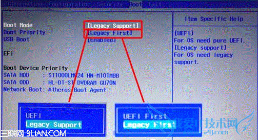 2. 选择上方“Boot”的选项,将“Boot Mode”和“Boot Priority”都改成Legacy开头的模式。如下图: