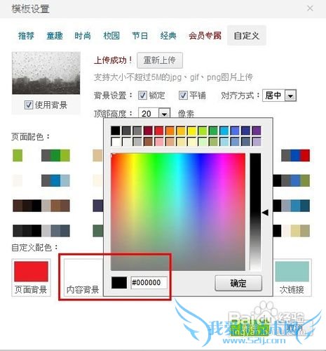 6.”内容背景“的颜色就要编辑一下了,把颜色参数设置为”#000000“,设置后别按“确定”,要直接“回车”,然后点击“保存”,如图所示