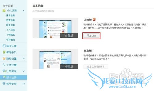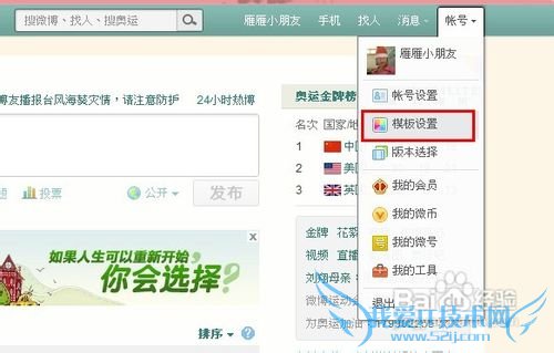 1.首先肯定是先登录你的新浪微博,如果你的微博不是最新版本的,就要设置为最新版本,如图所示,点击右上角的“账号”,选择“版本选择”