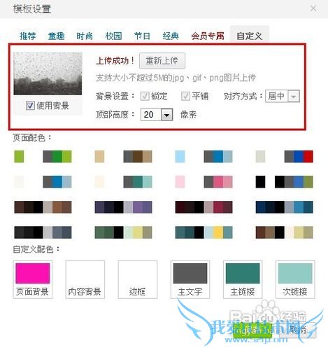 4.选择”自定义“,这里要使用背景,上传一张你想要的背景图片,