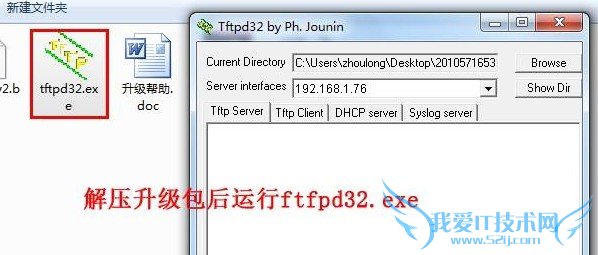 3 双击打开升级包中的tftpd32.exe文件,并确保在整个升级过程中该软件均处于开启的状态(如下图2);