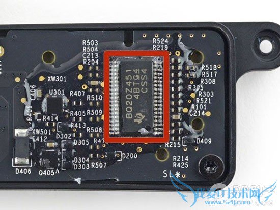 看到一块熟悉的零件:德州仪器 BQ20Z451 监测计,用来测量电池电量的。