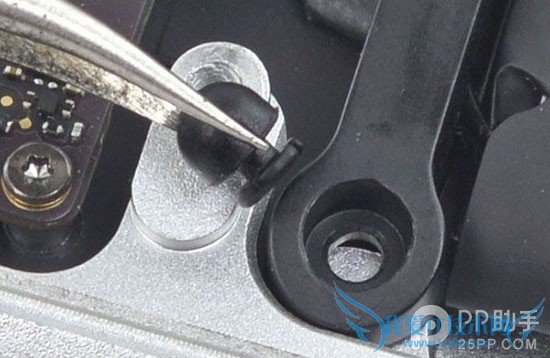 以前电池架这里是由四枚螺丝钉来固定的,但现在改用四个橡胶塞了,方便很多。但各有好处吧,以前是用螺丝钉固定电池架,然后电池用粘合剂固定在主板,两层加固貌似可靠很多,现在不需要用螺丝钉固定了,不知道是不是因为电池用的粘合剂更加牢固?千万别啊,铲除电池是很累人的活儿呢。