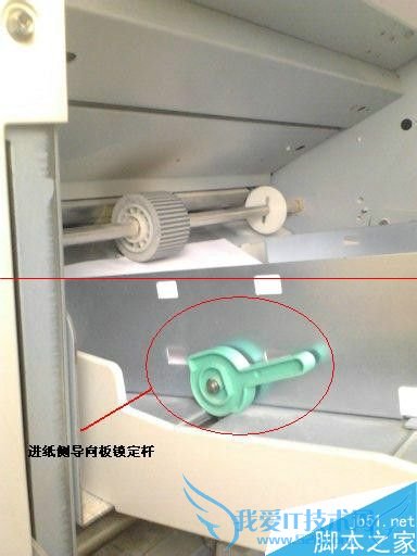 2、释放纸盘上的进纸侧导向板锁定杆,调整侧导向板使之与纸张尺寸匹配。